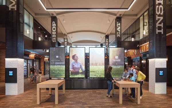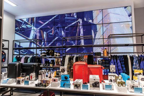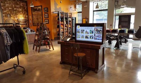 In the center of each store a pair of 42in. touch screens provide the full catalog of Carhartt merchandise.